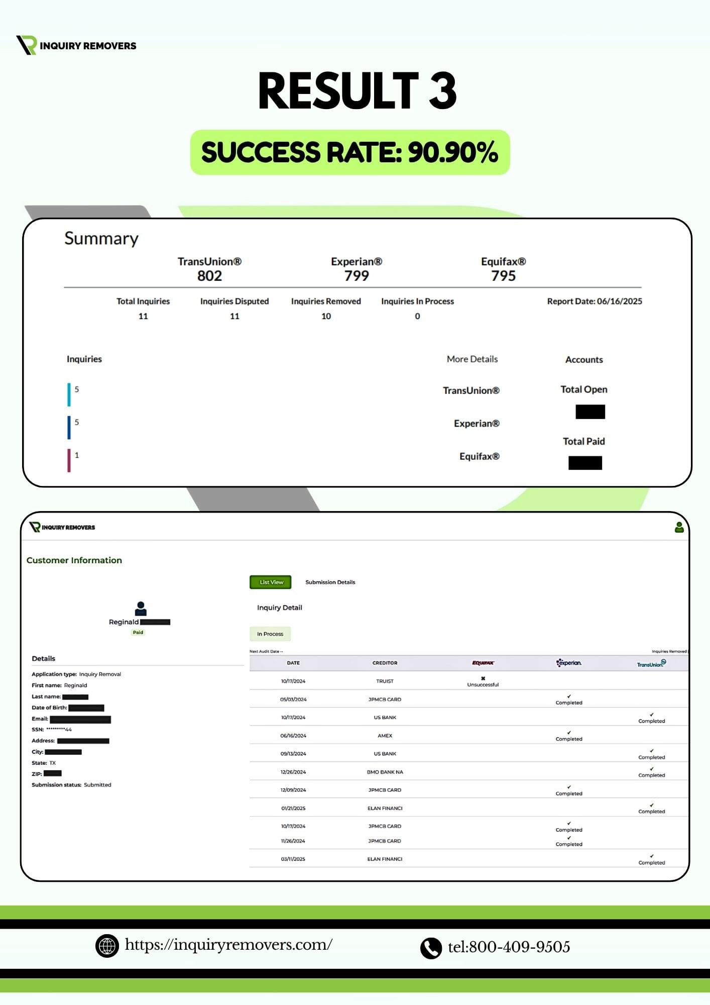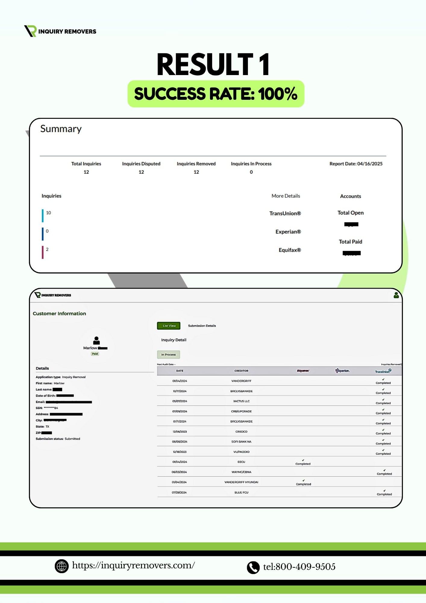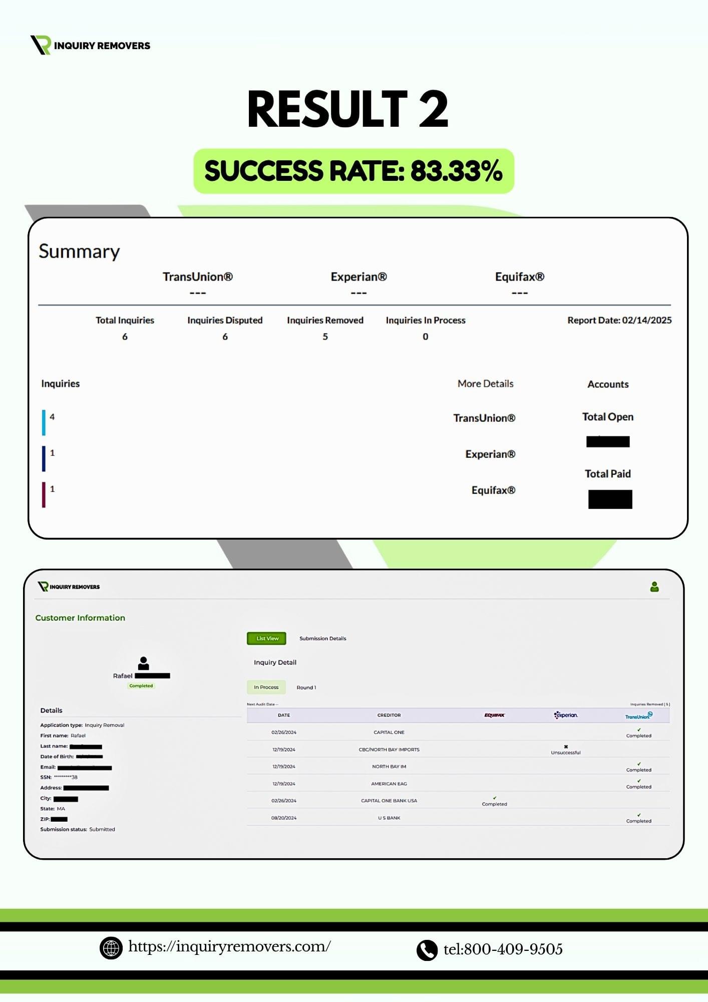 Join thousands of users that have improved their credit profile with Inquiry removers